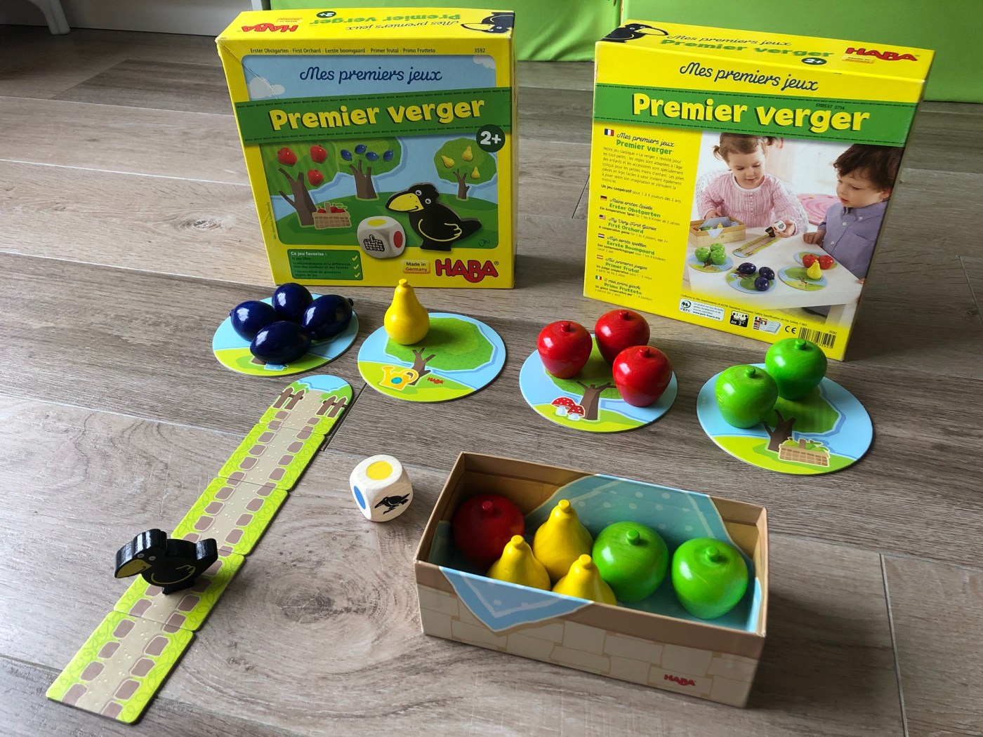 Je vous présente aujourd’hui un avis sur un jeu de société destiné aux plus jeunes, dès 2-3 ans : Premier Verger, proposé par le génial éditeur allemand Haba. Celui-ci propose en effet des jeux très variés et toujours d’excellente qualité pour les enfants. Nous en possédons plusieurs chez eux (les fameuses boîtes jaunes !) et en sommes rarement déçus.